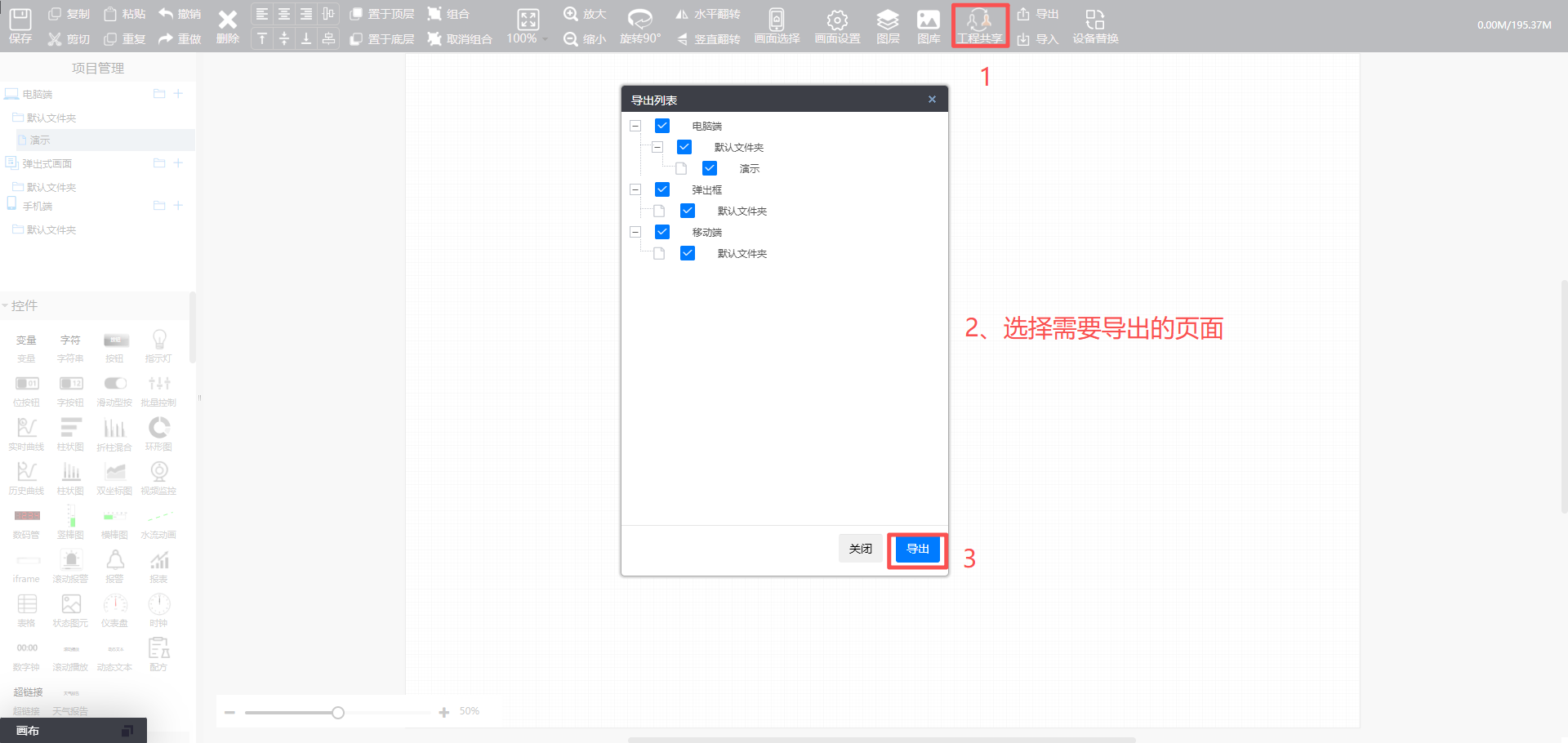 注意:只是导出画面,关联的变量不会导出,新项目需重新关联变量。