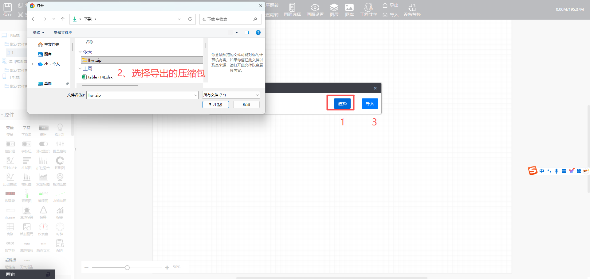 功能:把当前项目的组态画面导出压缩包,导入新的项目。