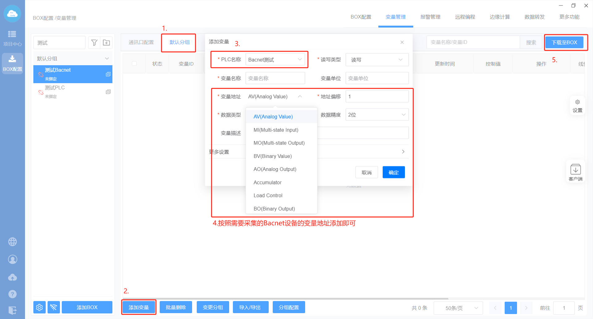 扫描添加Bacnet设备以及扫描添加Bacnet变量