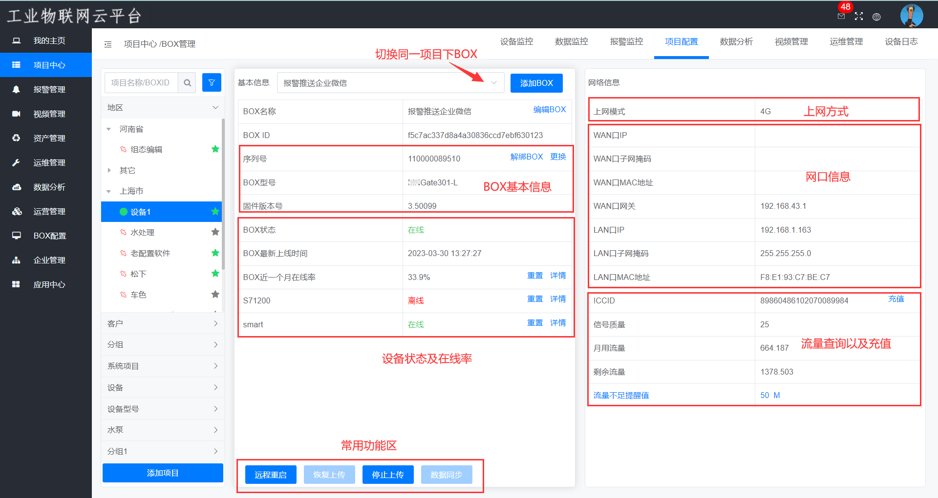 进入【项目中心】——【BOX管理】