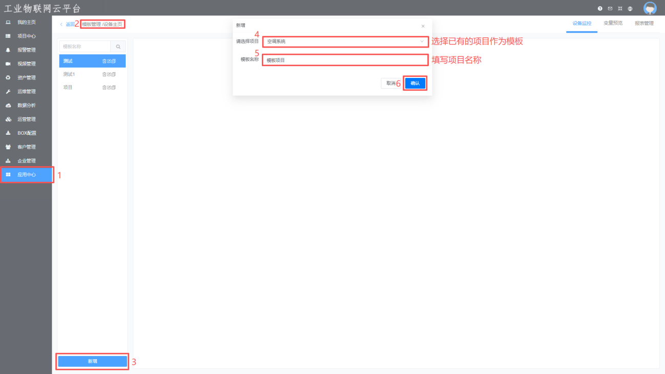 (1)新建模板,选择是第三方设备的项目作为模板