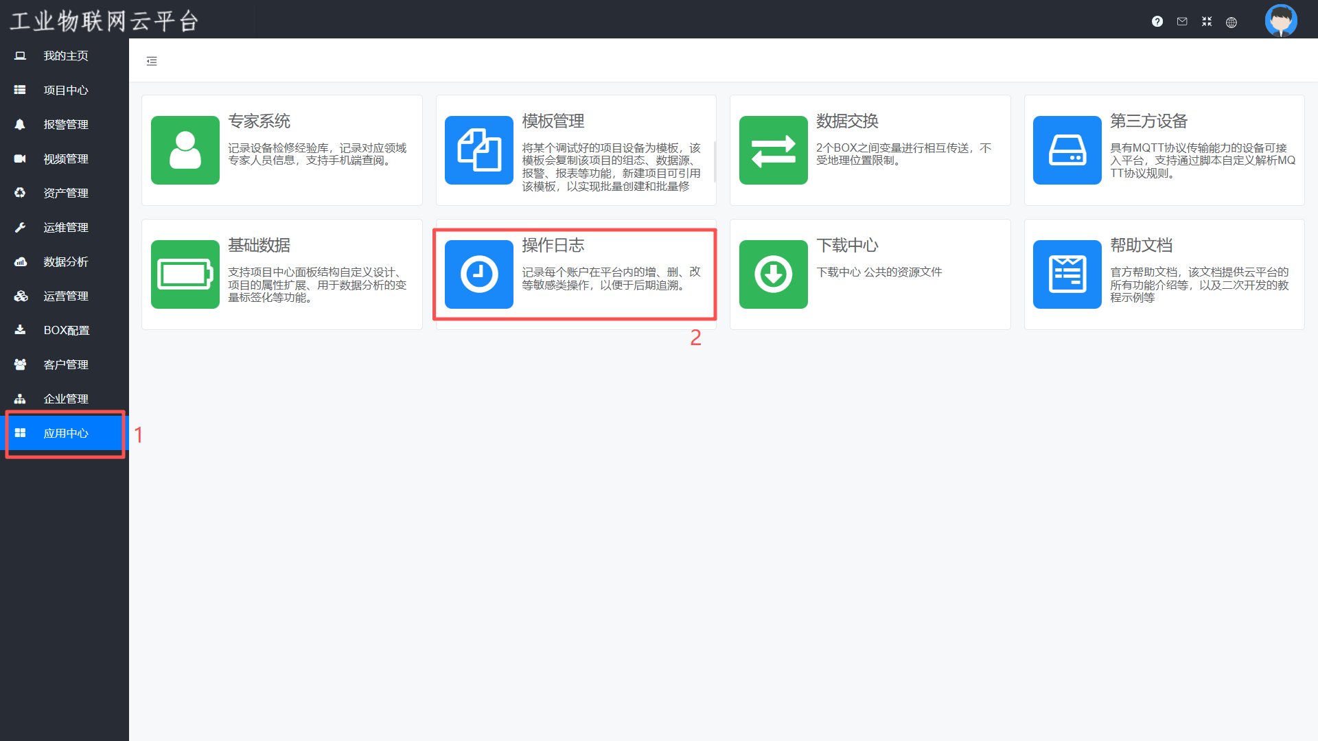 应用中心包含了平台的扩展功能,详见下图