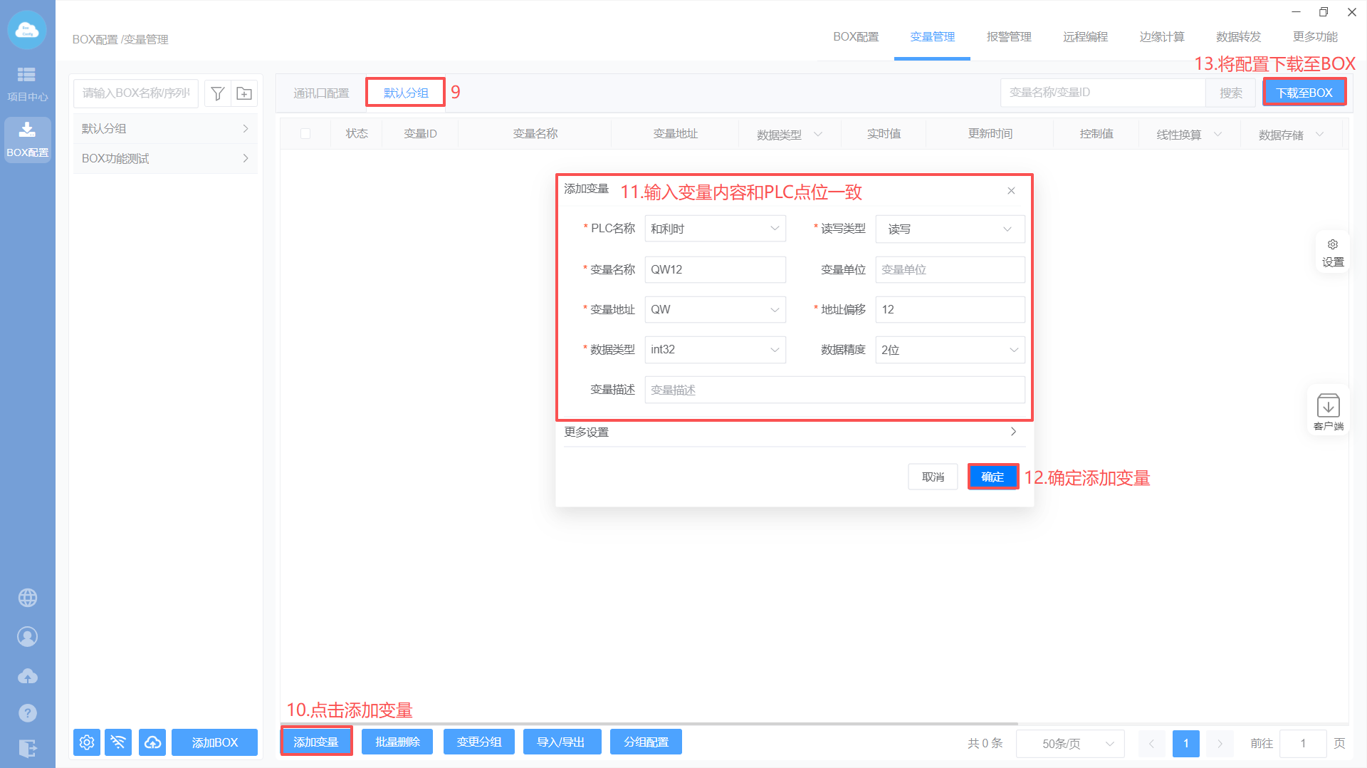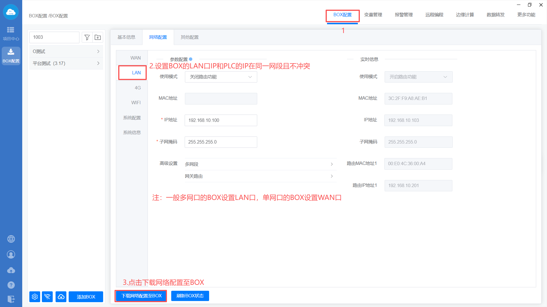 Box设置(注意:修改box参数,与PLC保持在同一网段)