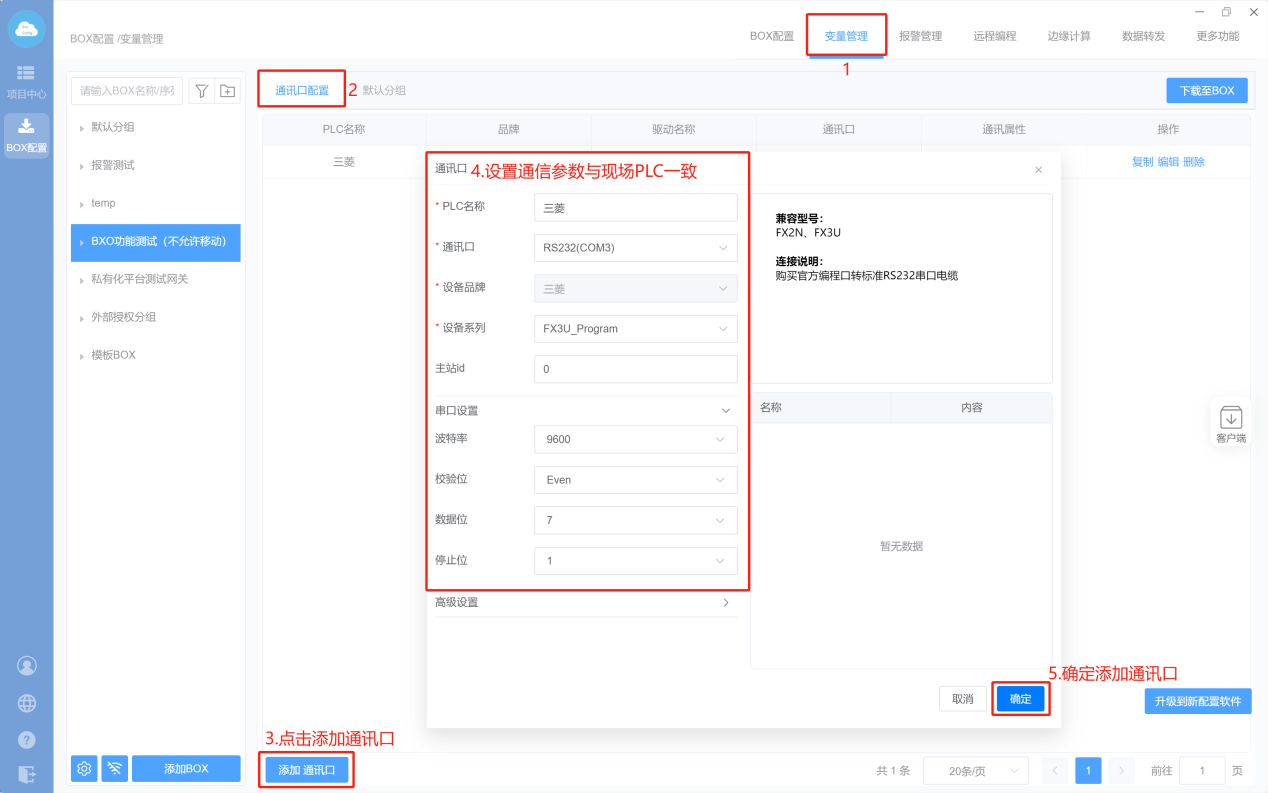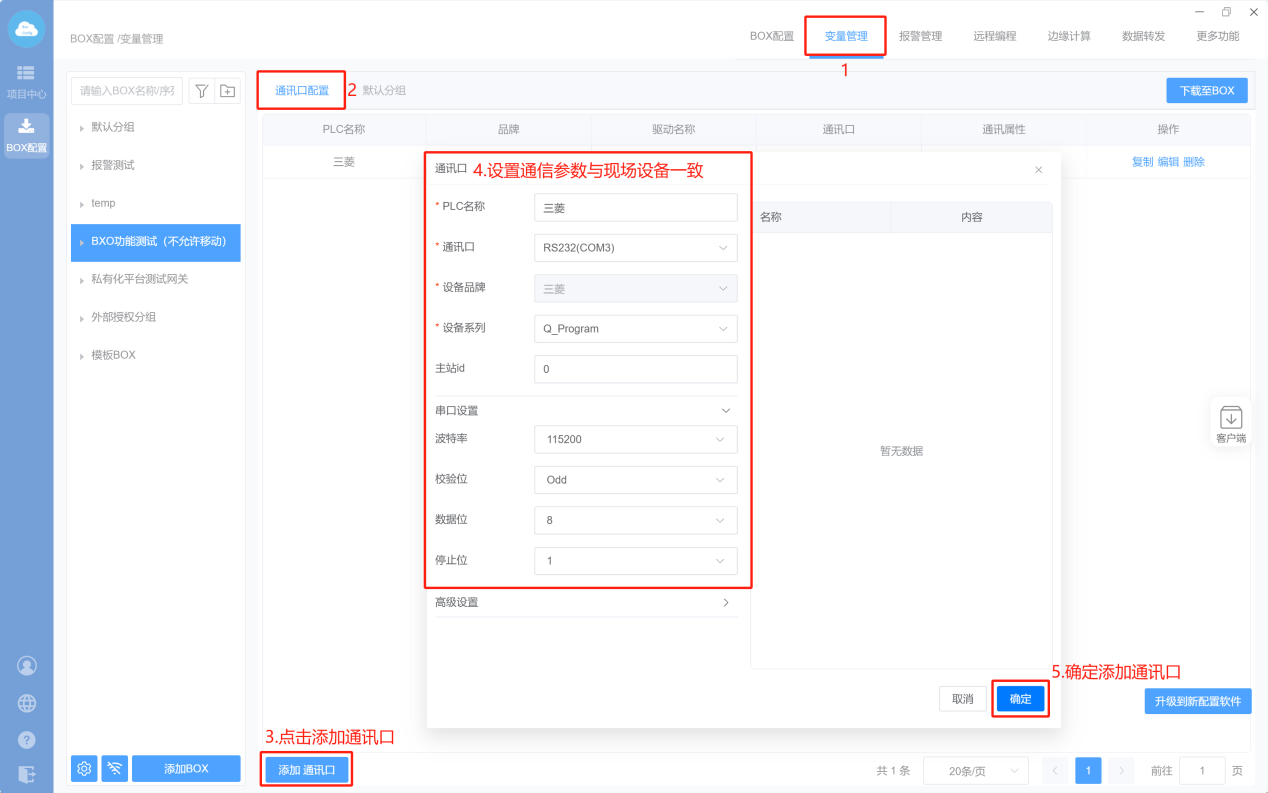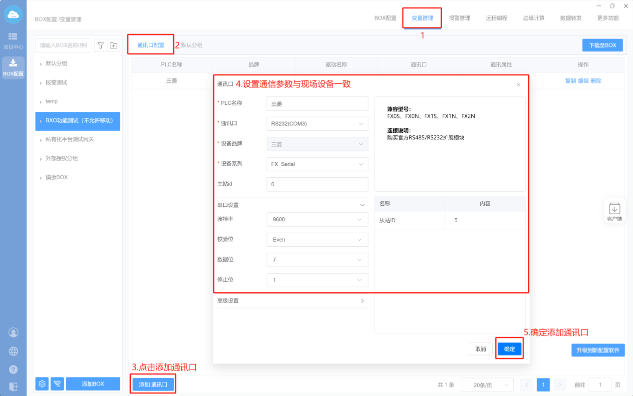 1. Box配置(主站ID不需要填写,默认即可;波特率保持