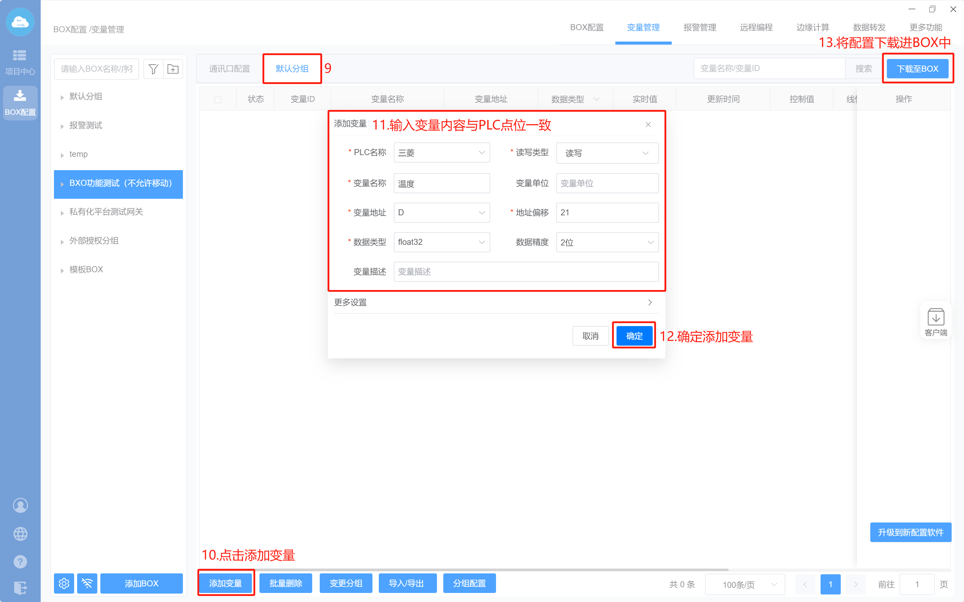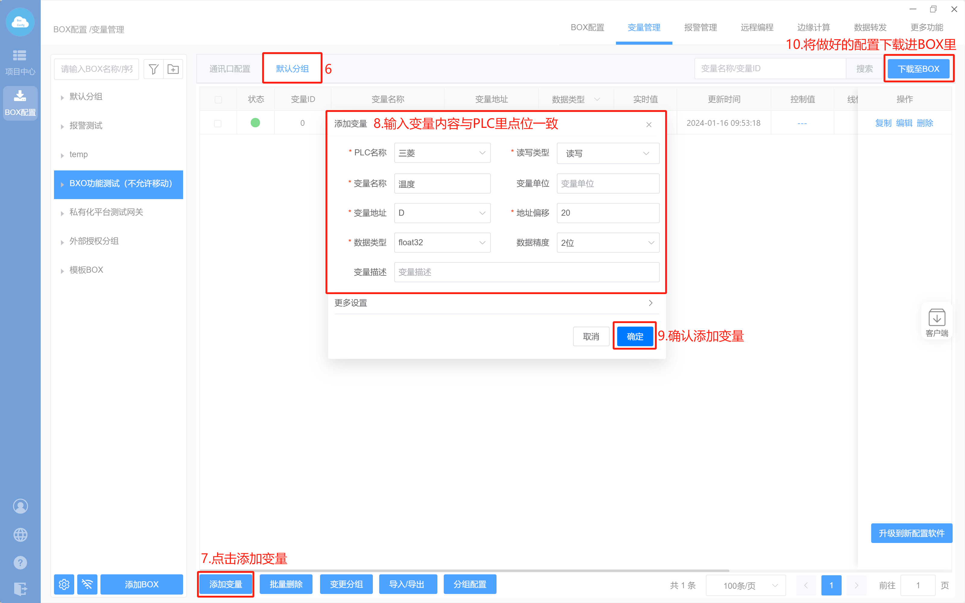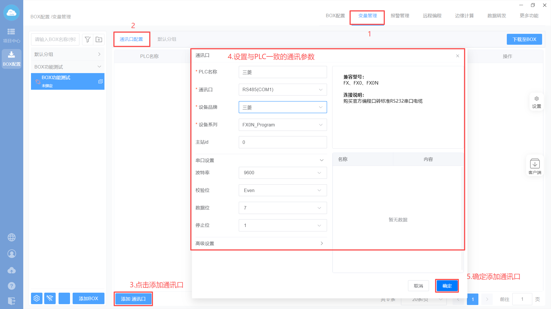 1. Box配置(主站ID不需要填写,默认即可;波特率保持