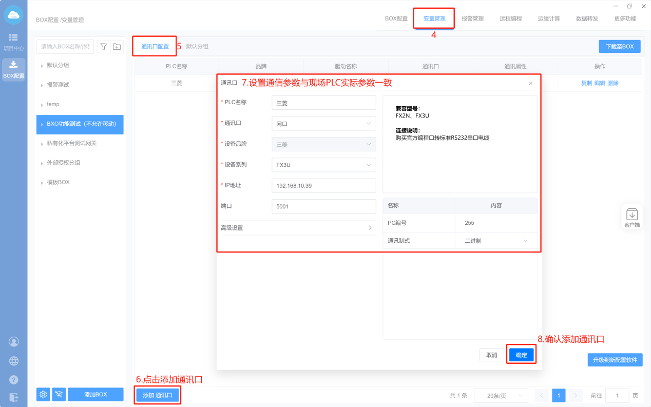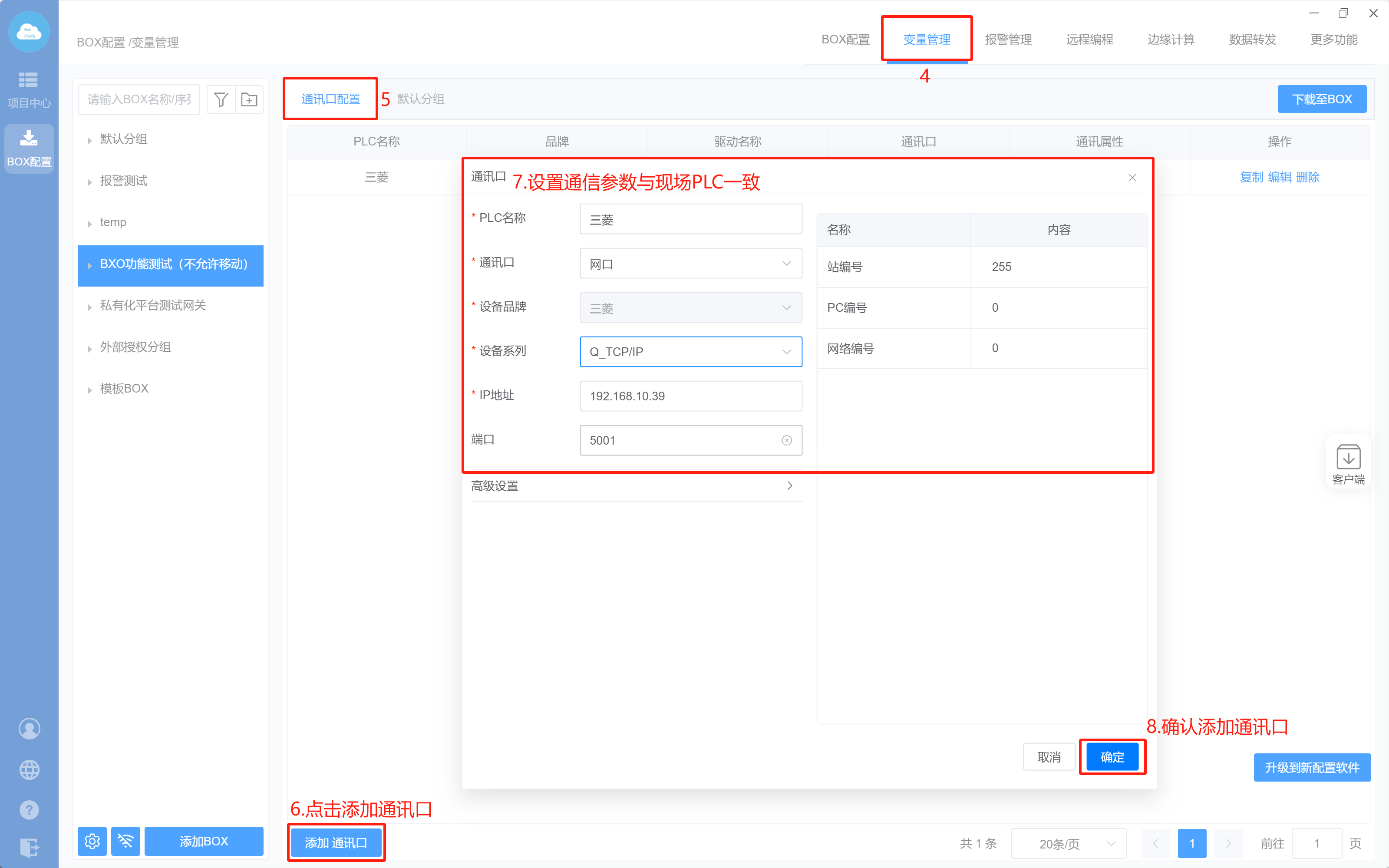 1. Box设置(注意:修改box参数,与PLC保持在同一网段)