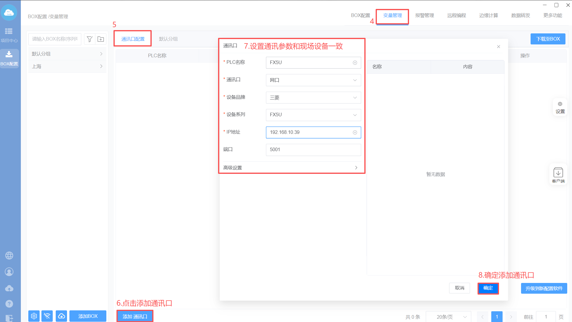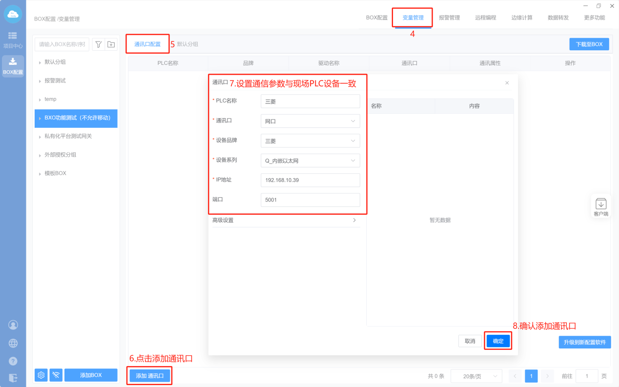 1.Box设置(注意:修改box参数,与PLC保持在同一网段)