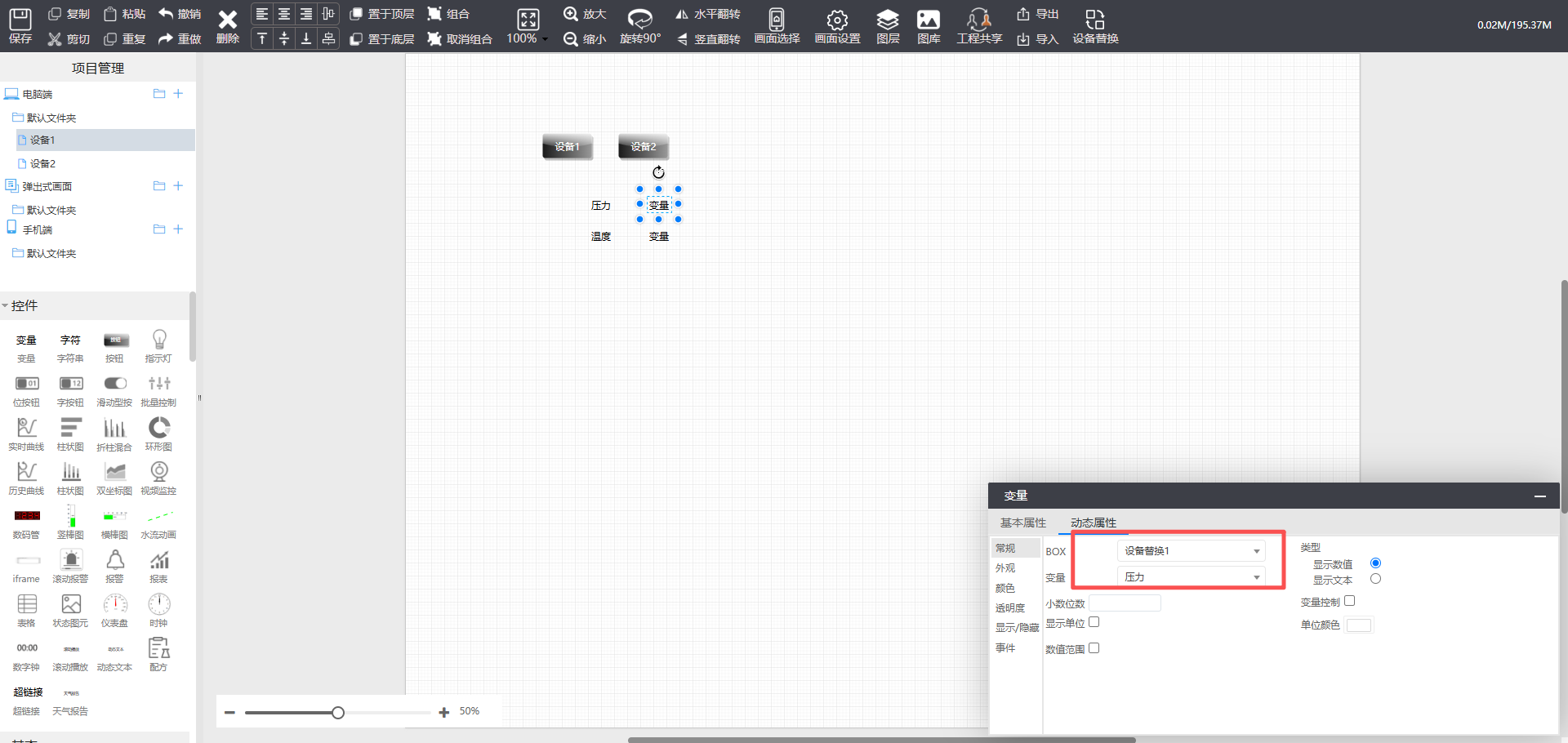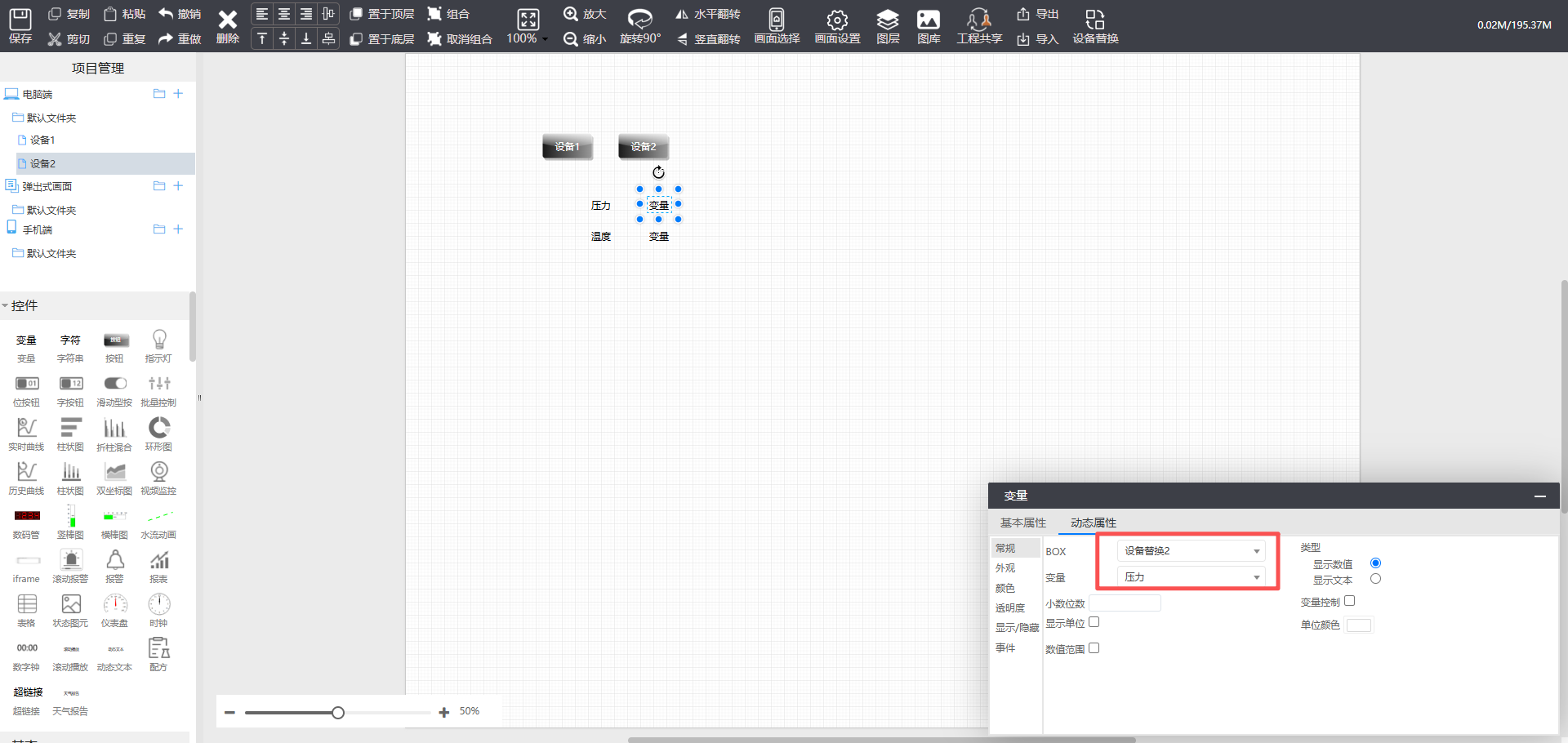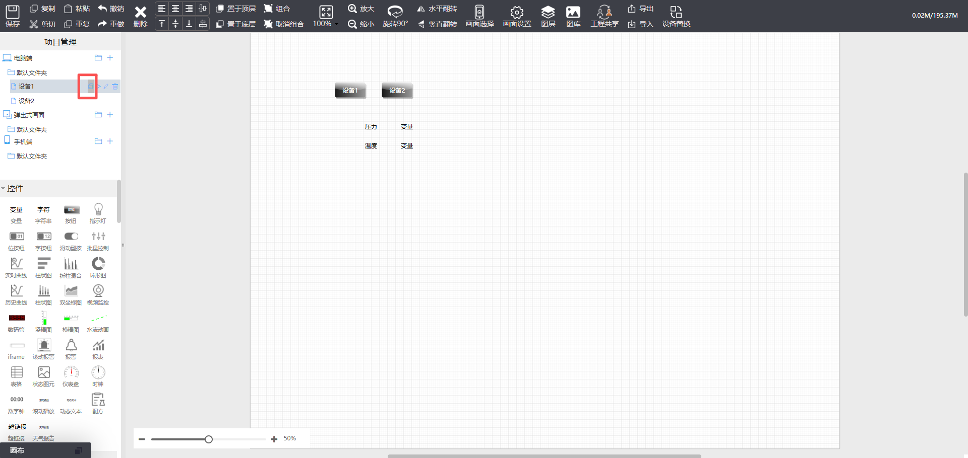 1. 设备1画面设计好并且关联变量