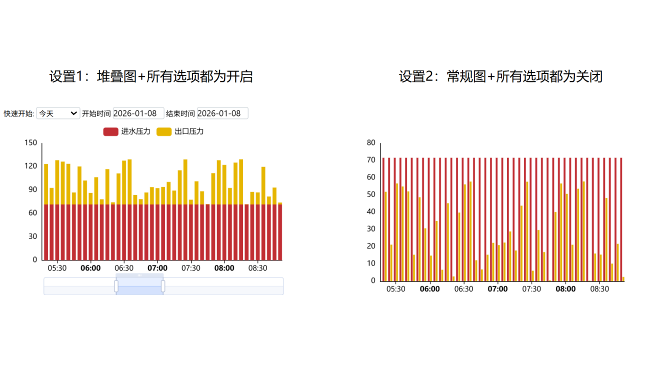 类型:分为堆叠图和常规图;