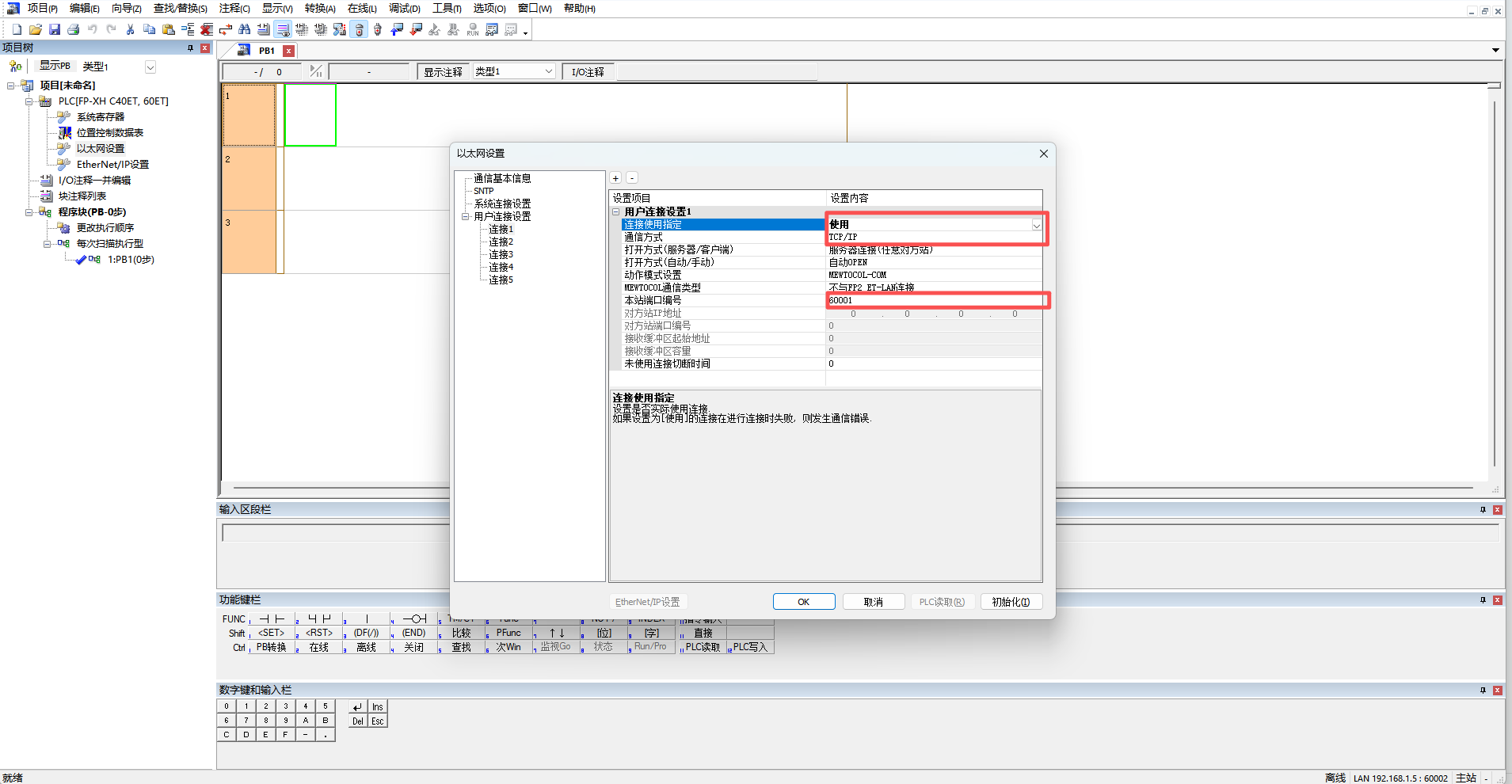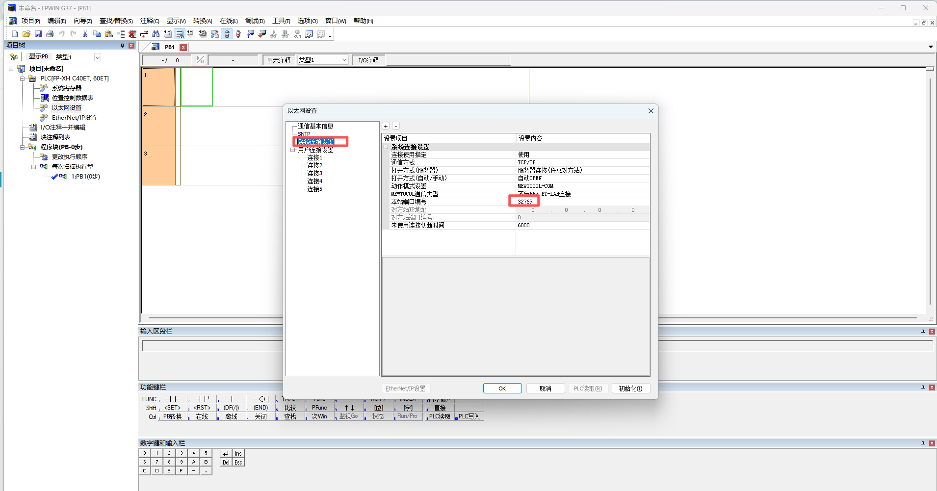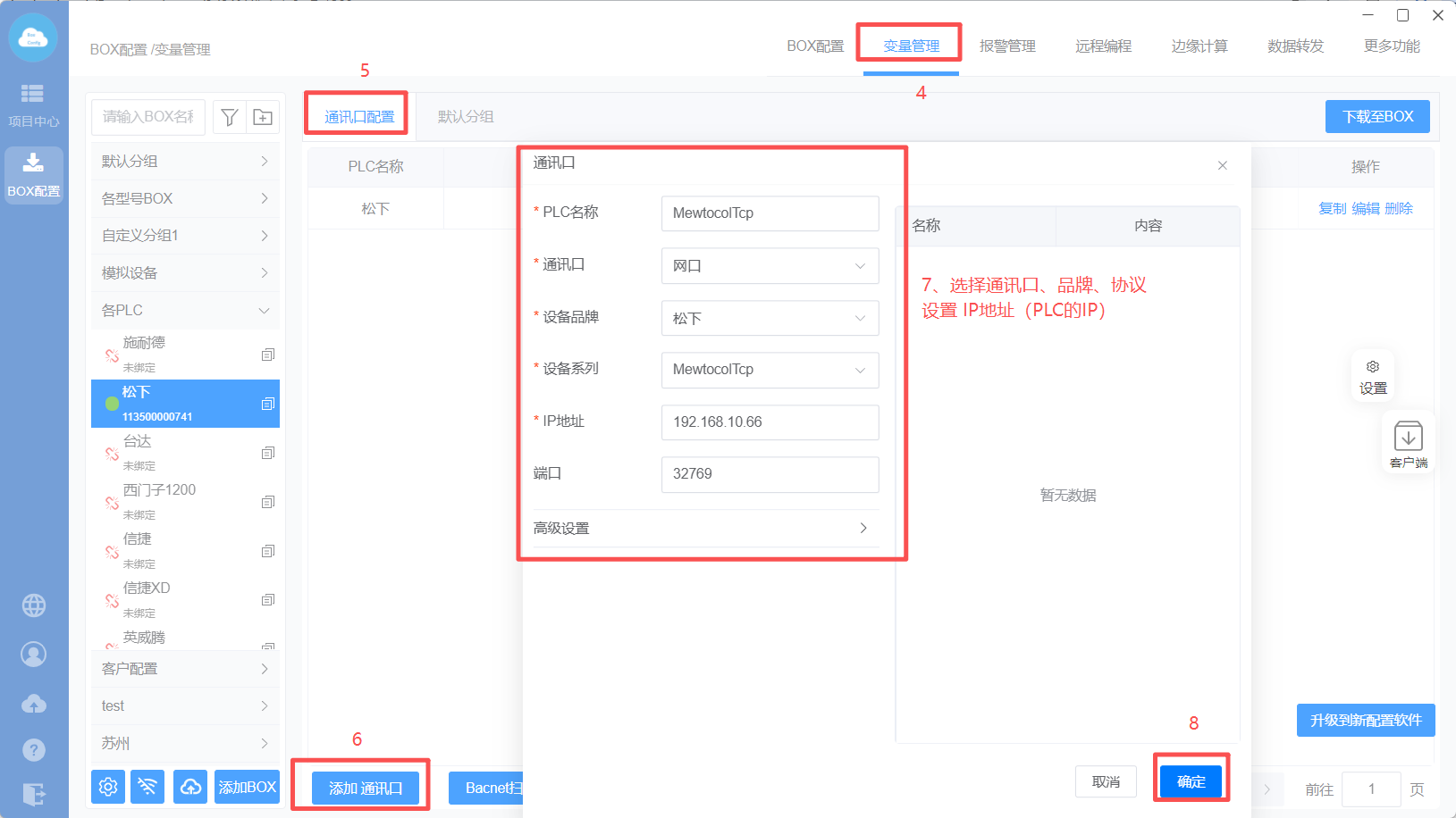 注意:系统连接只能和一个设备进行通讯,如果同时连了多个设备,需要使用连接1-5;BOX这边的端口和PLC里设置的端口保持一致就行