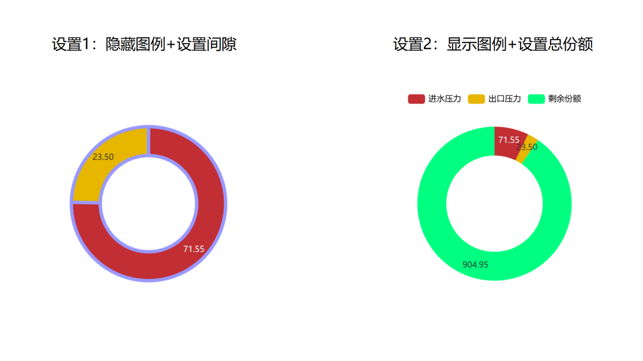 总份额:整个饼图值的额度,比如设置1000,则每个变量的饼图比例按照: 变量值/1000 算出的的值作为饼图占比显示。所有的变量值加起来低于1000,则差值作为剩余份额展示;