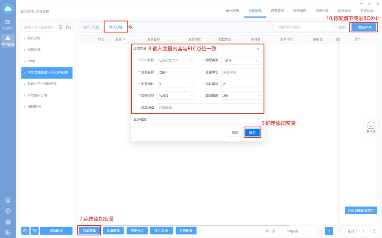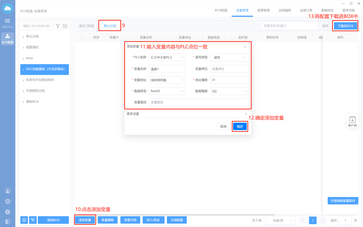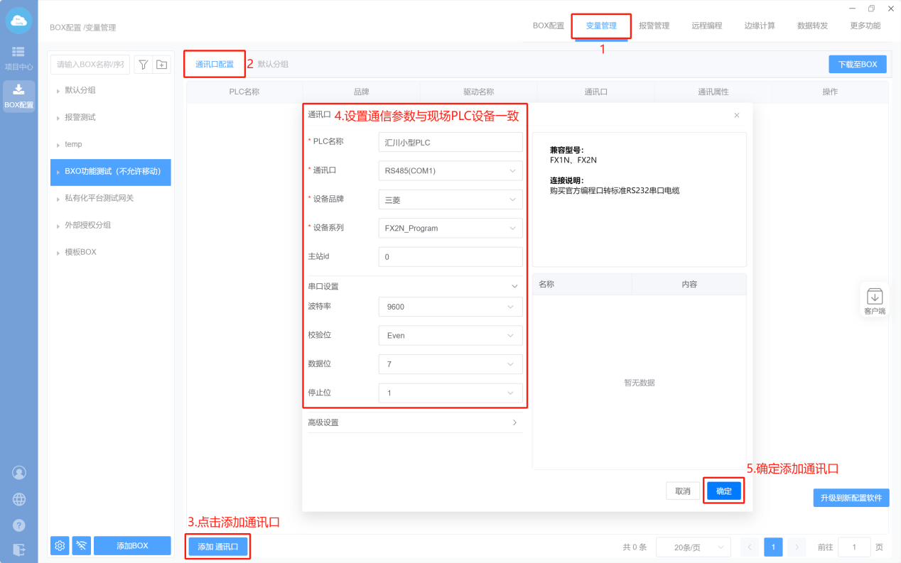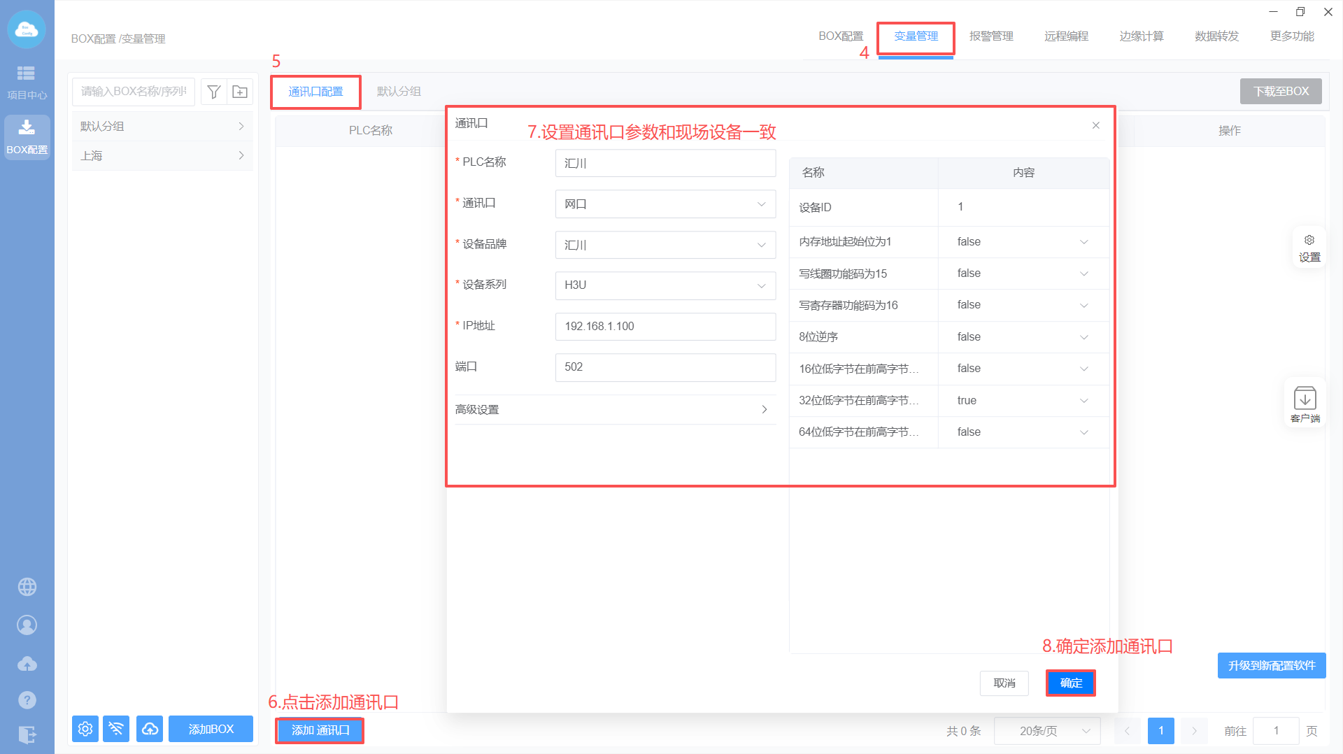 - Box配置(PLC和box的通讯参数保持一样)