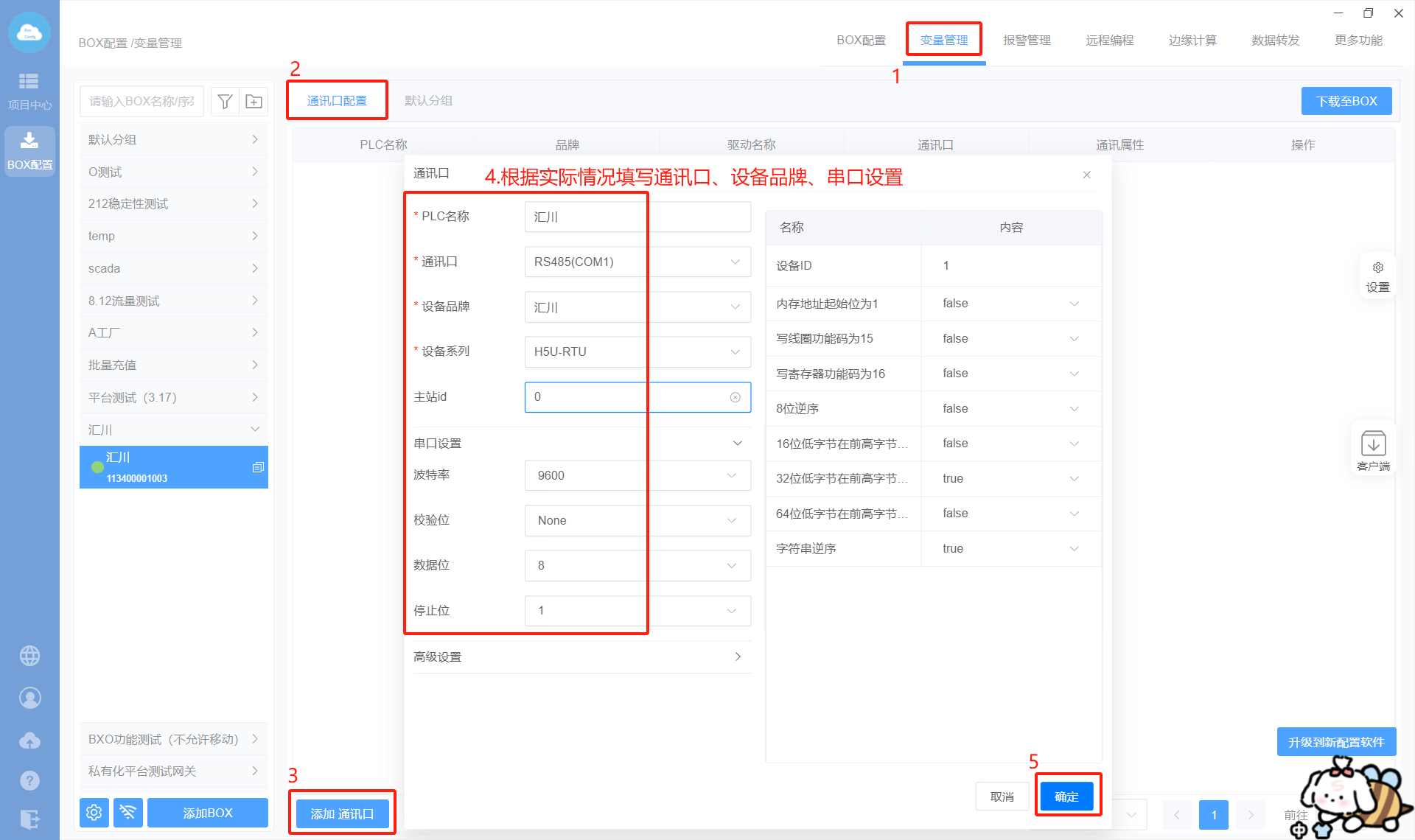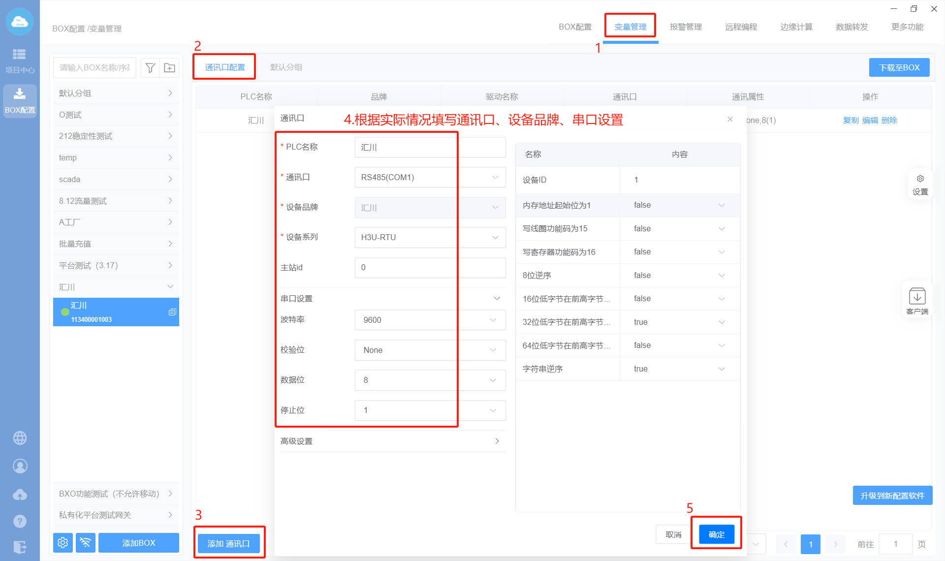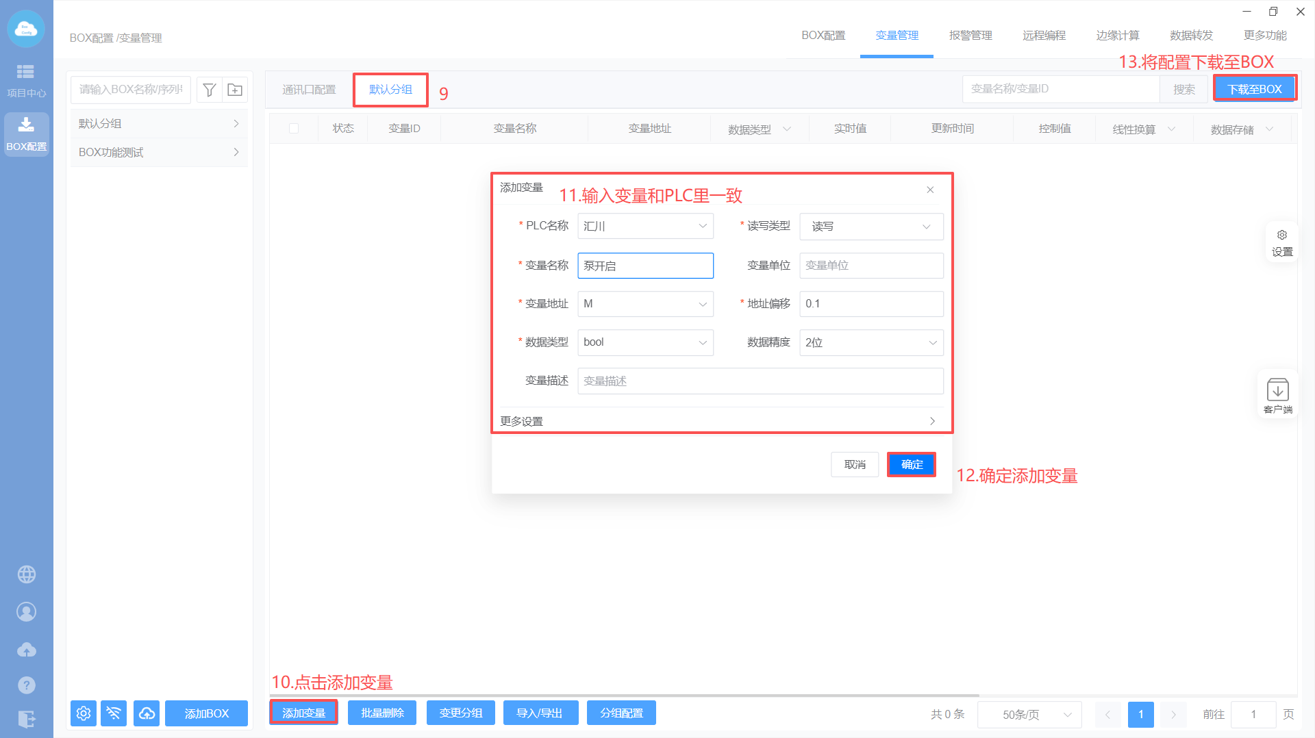 - Box配置(PLC和box的通讯参数保持一样)