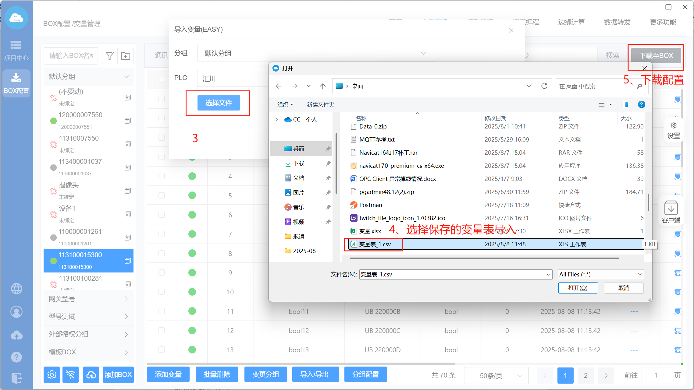 通过“导入变量(EASY)”直接导入csv格式变量点表。