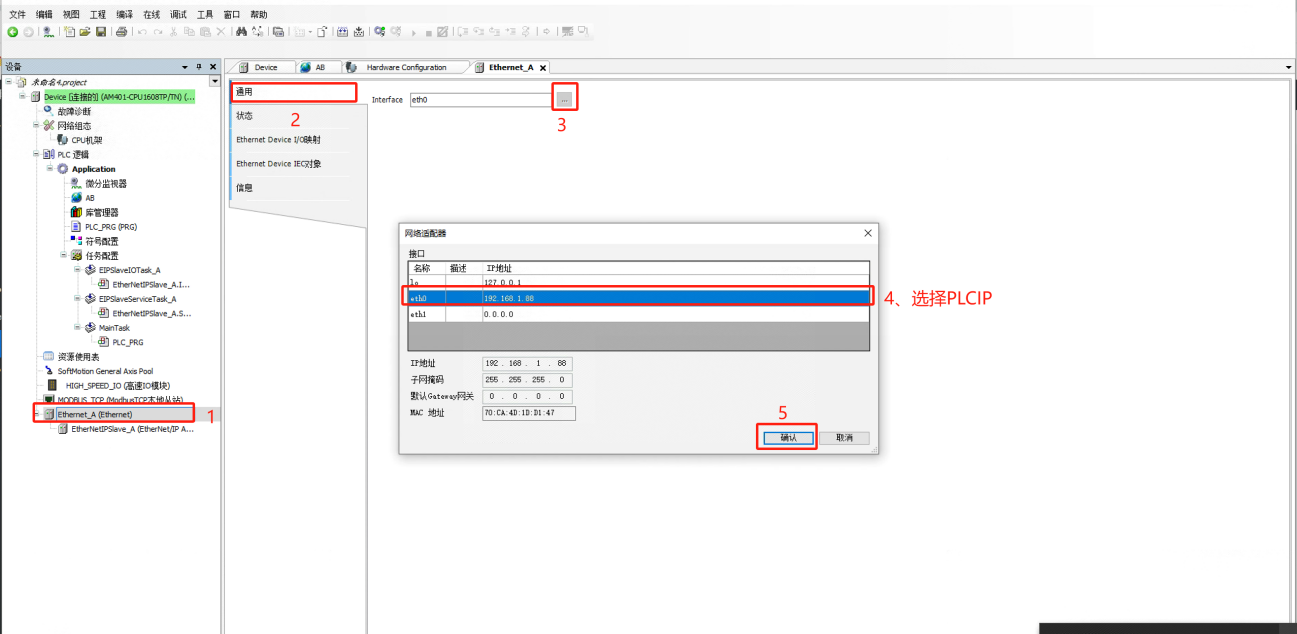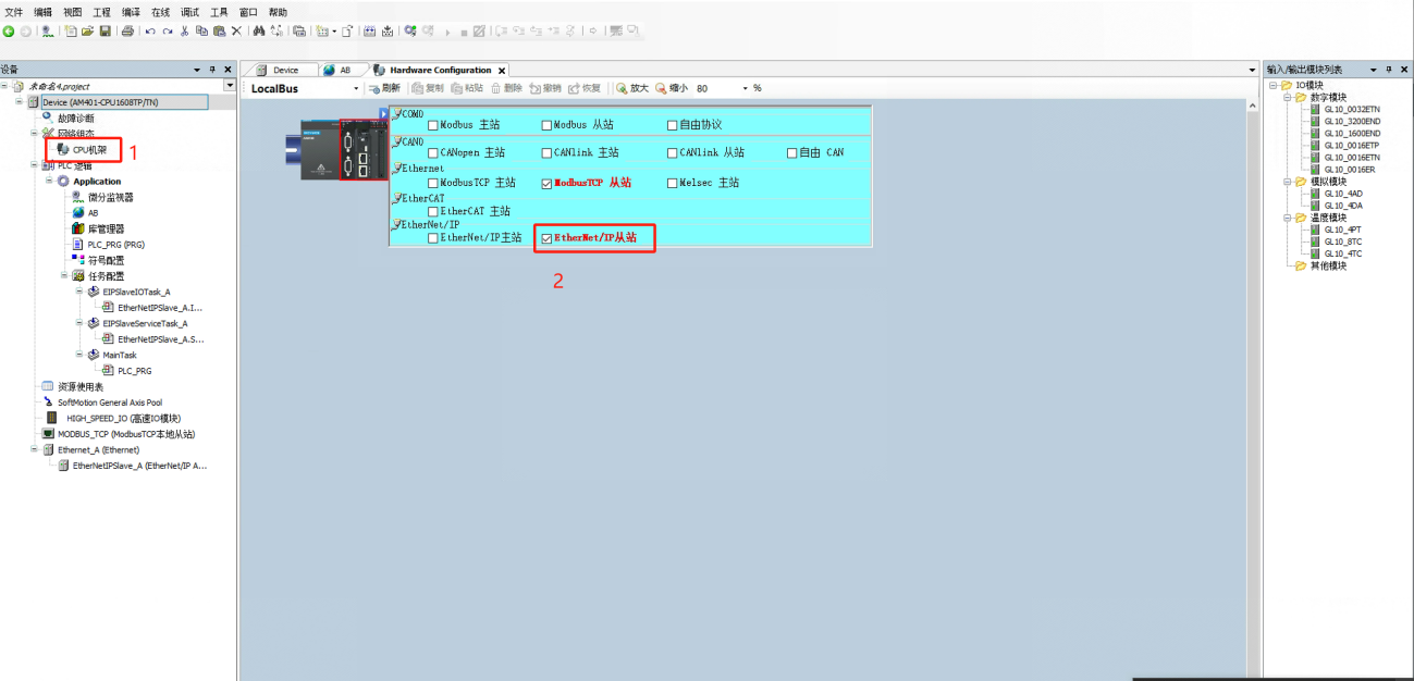 (1)设置“EtherMet/ip从站”