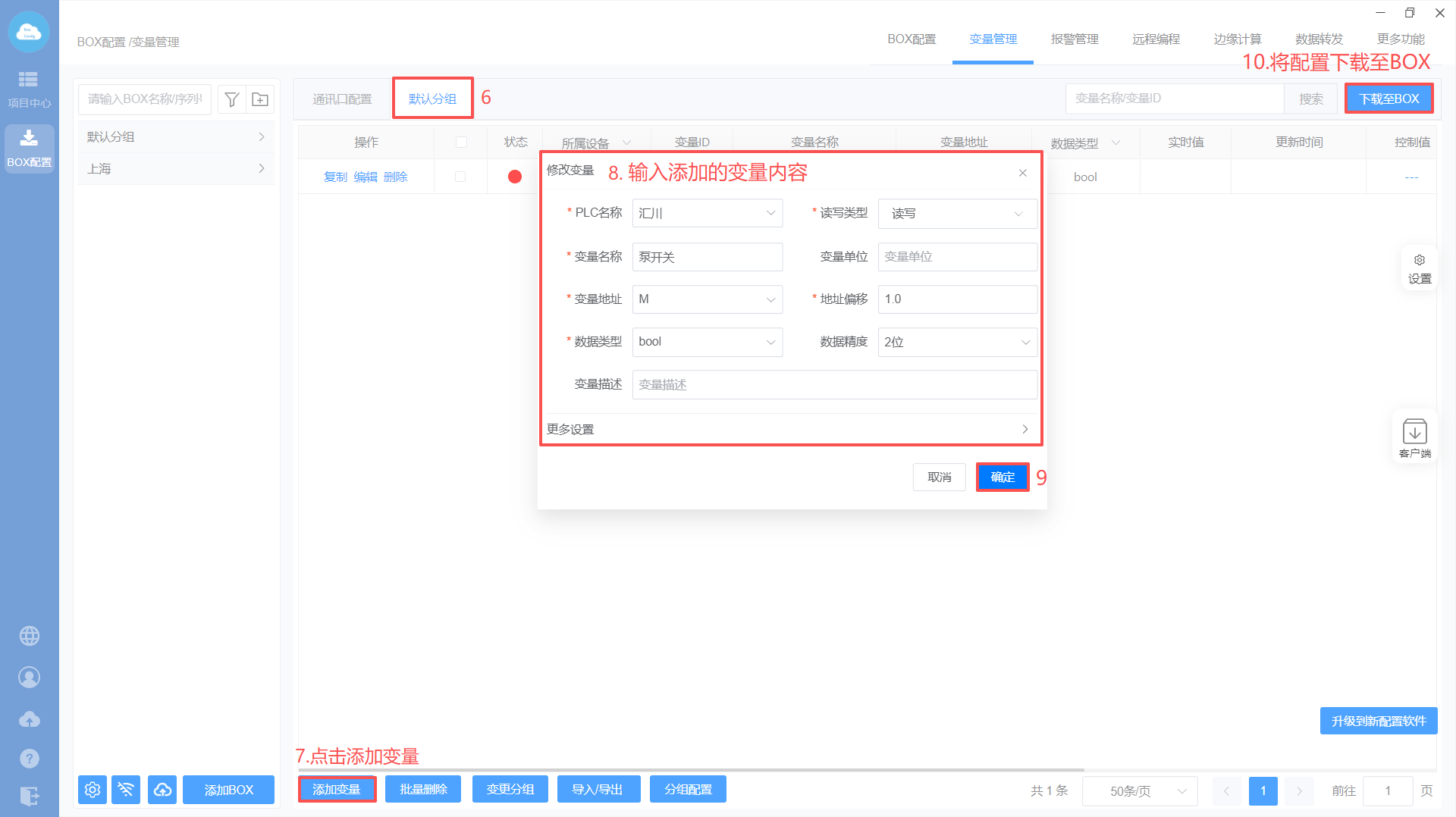 - Box配置(注意:修改box参数,与PLC保持在同一网段)