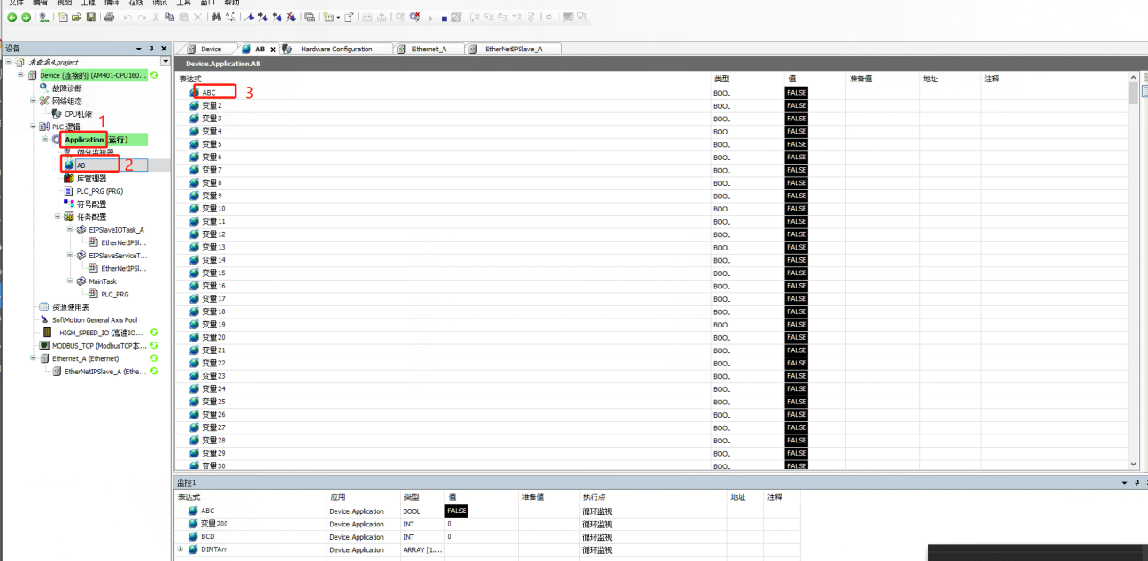 注意:需要把PLC里边如下图123步骤直接输入到平台变量名称里使用。