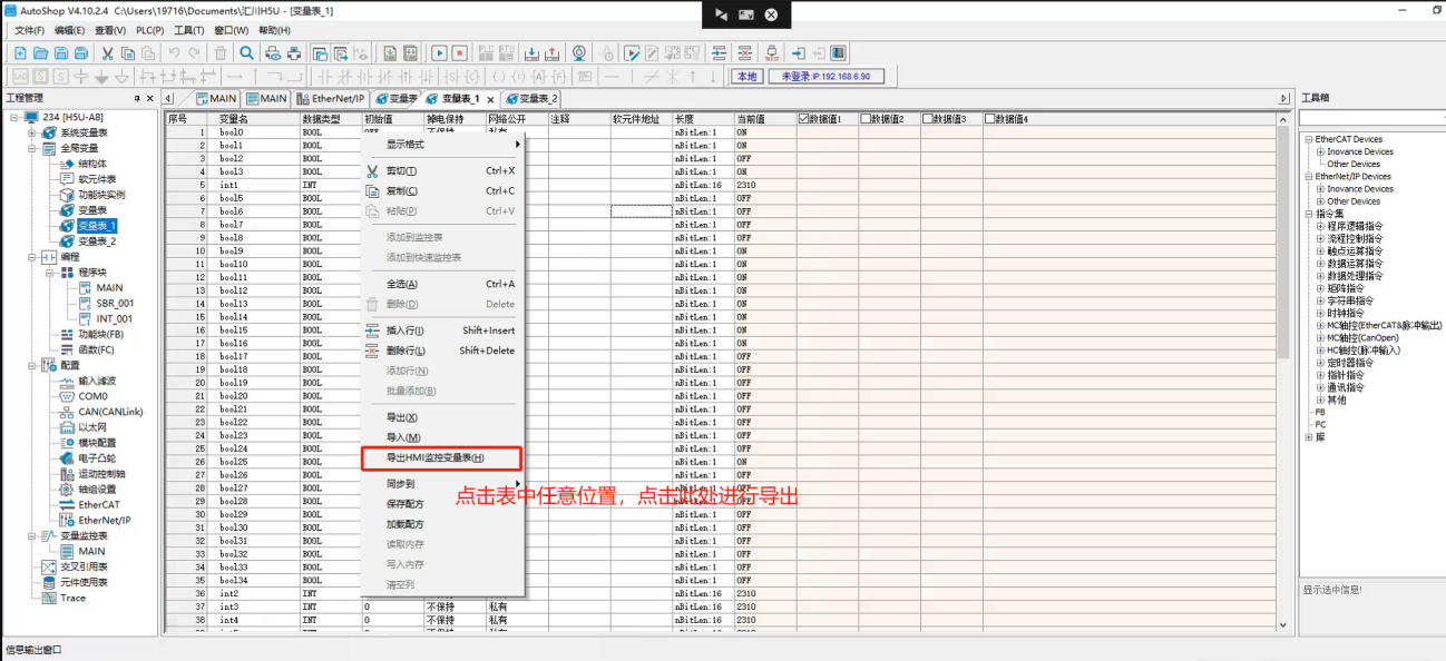 导出PLC变量点表保存到电脑上。