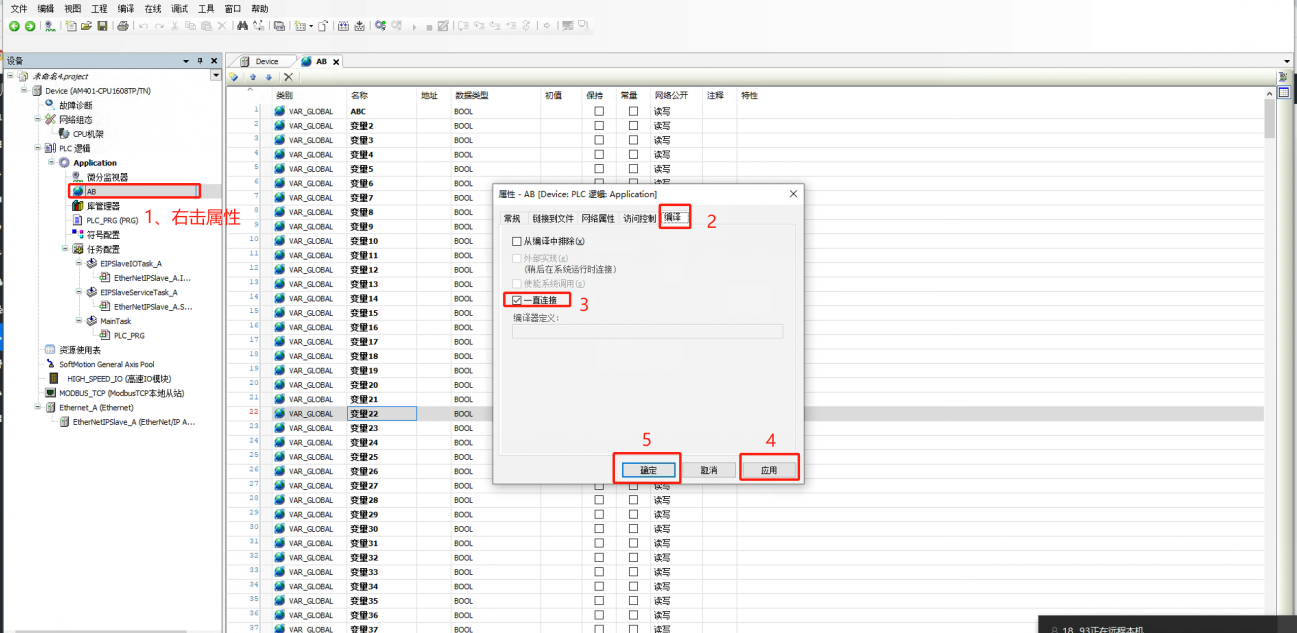 (3)变量添加完设置“编译”一直连接。