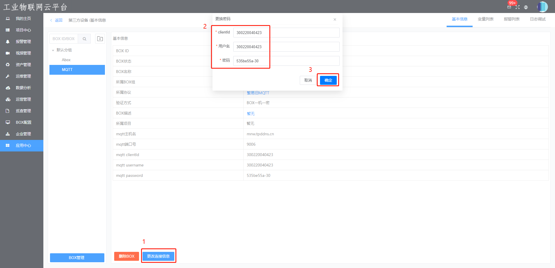 其中 mqtt 主机名,mqtt端口号,mqtt username,mqtt password 要填入MQTT配置中;